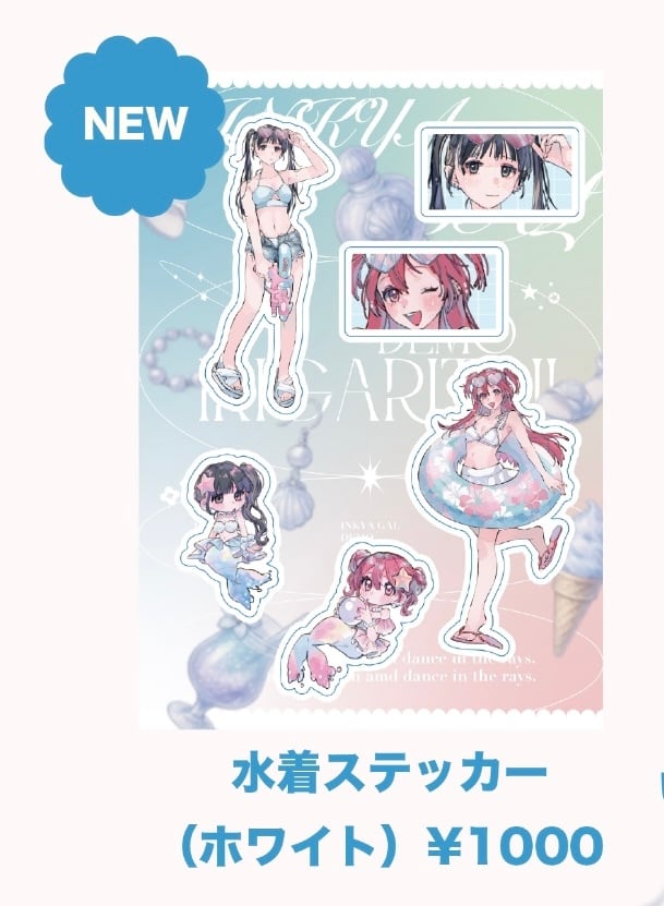水着仕様のイラストステッカー!(ホワイトなので透けません)